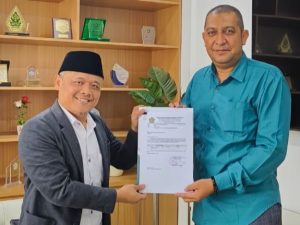 BIREUEN – Rektor Institut Agama Islam (IAI) Almuslim Aceh Dr Nazaruddn MA bersama Pj Bupati Bireuen Aulia Sofyan PhD melakukan proses penandatangani Nota